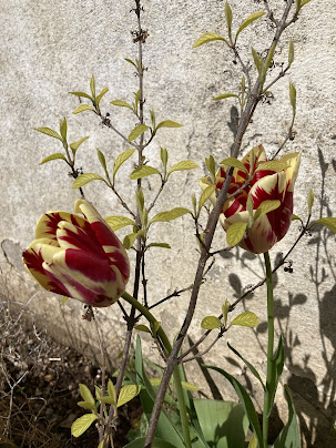 At the end of the day we thought we couldn't leave without seeing the sea, so we parked right by our old university campus and walked through the gardens which were looking particularly lovely with an assortment of different tulips popping up beneath the trees...